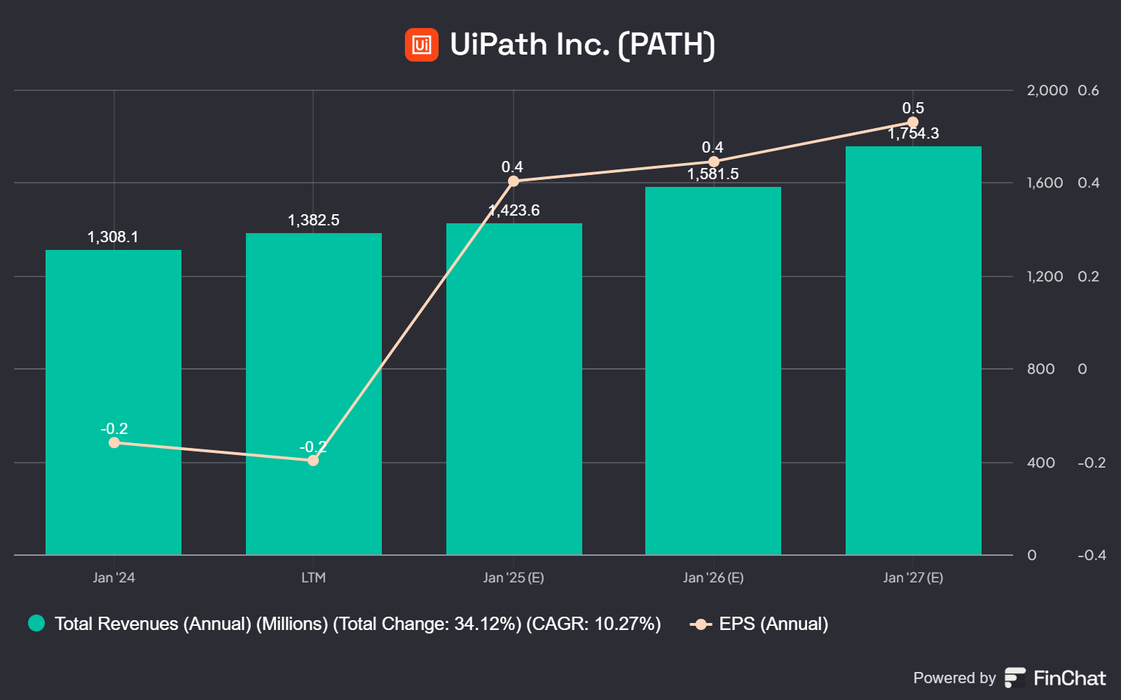 UiPath zou wel eens een 'comeback kid' kunnen zijn om meerdere redenen. Allereerst is de waardering relatief aantrekkelijk, met een EV/FCF van ongeveer 20x. Ook zie ik een versnelling in hun omzetgroei en een positieve EPS in de komende jaren. Dit zou wel eens het sentiment kunnen omdraaien. Daarnaast is de associatie van UiPath als een AI-bedrijf een mooie bonus.