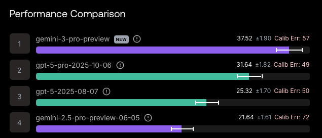 Ter vergelijking: OpenAI’s GPT-5.1 (gelanceerd in november 2025) scoort 26,5%. Dat maakt Gemini 3 bijna 11 procentpunten beter.