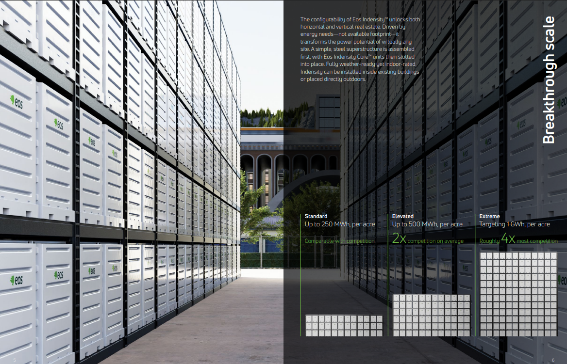 EOS lanceerde begin dit jaar ook een nieuwe productarchitectuur: Indensity. Dezelfde zinkchemie als de Z3, maar dit zijn modulaire eenheden die tot twaalf hoog gestapeld kunnen worden.