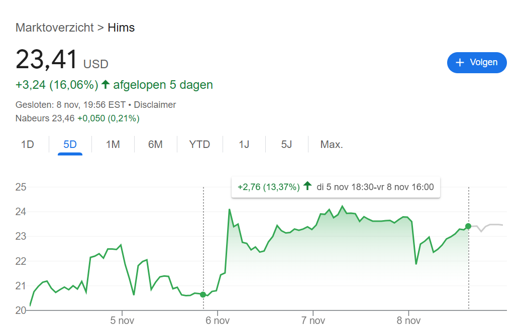 Afgelopen dinsdag heb ik mijn positie in Hims & Hers verdubbeld naar zo'n 11% van mijn portfolio, en de reden was simpel: na het geweldige Q3-rapport daalde de koers met maar liefst 5%, wat de markt een verkeerde reactie gaf.