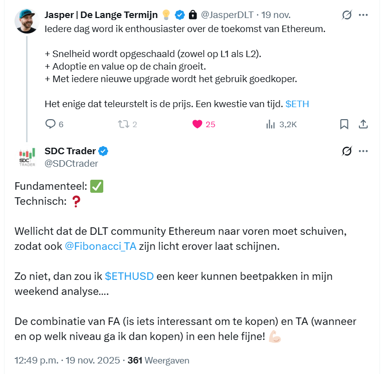 Jasper is fundamenteel enthousiast over Ethereum. Ik stelde op X dan ook voor om Yuri naar de charts te laten kijken via DLT kiest. Des te verrassender was het voor mij dat ik donderdagavond, nadat ik aan de andere creators om input voor mijn weekendanalyse had gevraagd, door Jasper werd uitgedaagd om Ethereum te beschouwen.