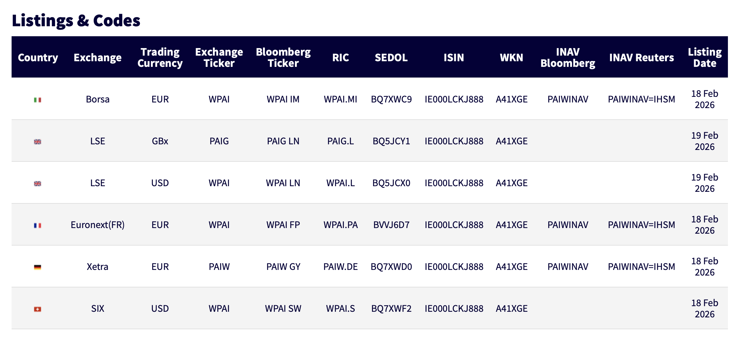 De ETF is gelanceerd op 10 februari 2026 en is genoteerd aan onder andere Xetra, Euronext Parijs en de London Stock Exchange.