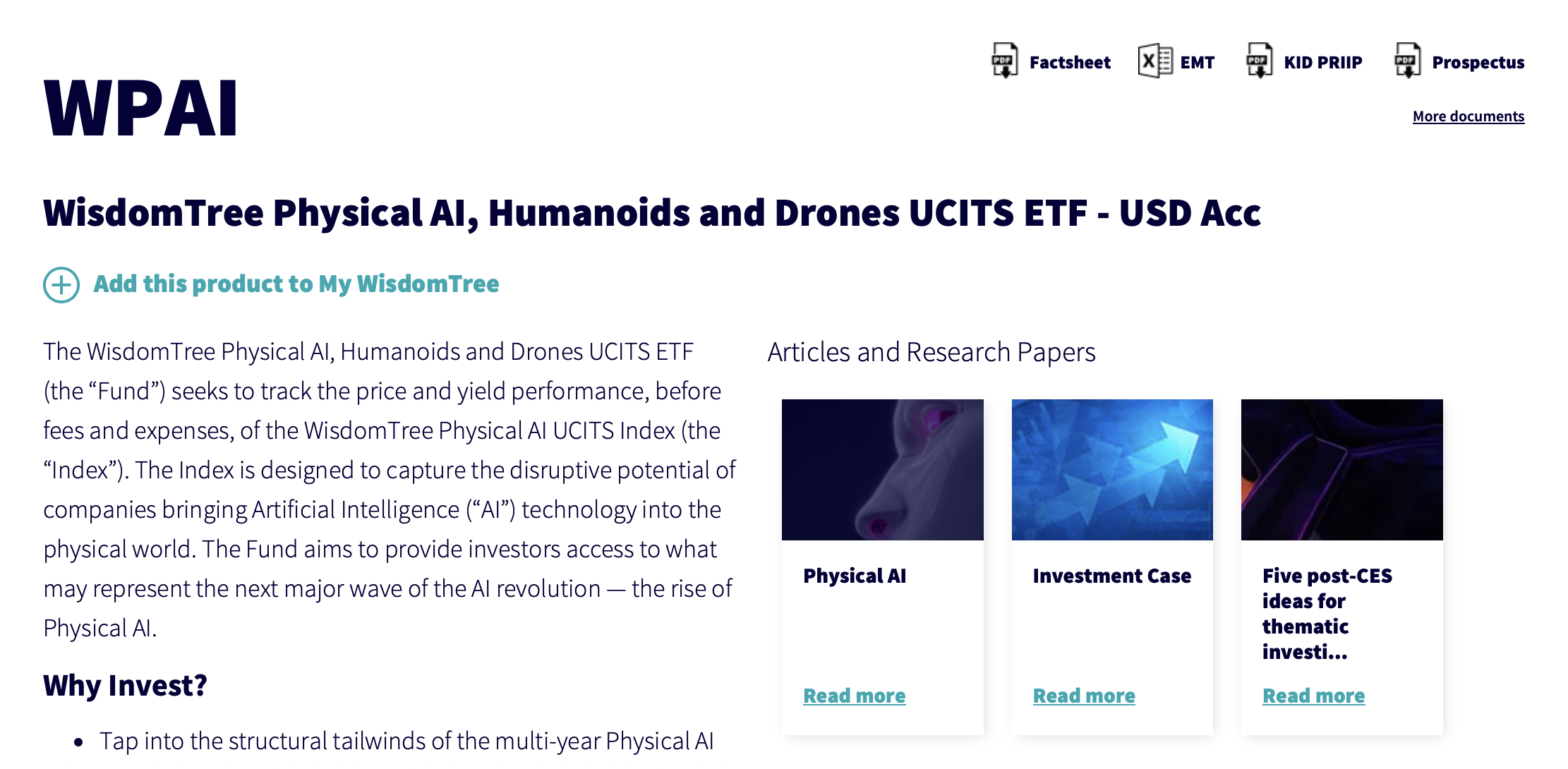- Naam: WisdomTree Physical AI, Humanoids and Drones UCITS ETF