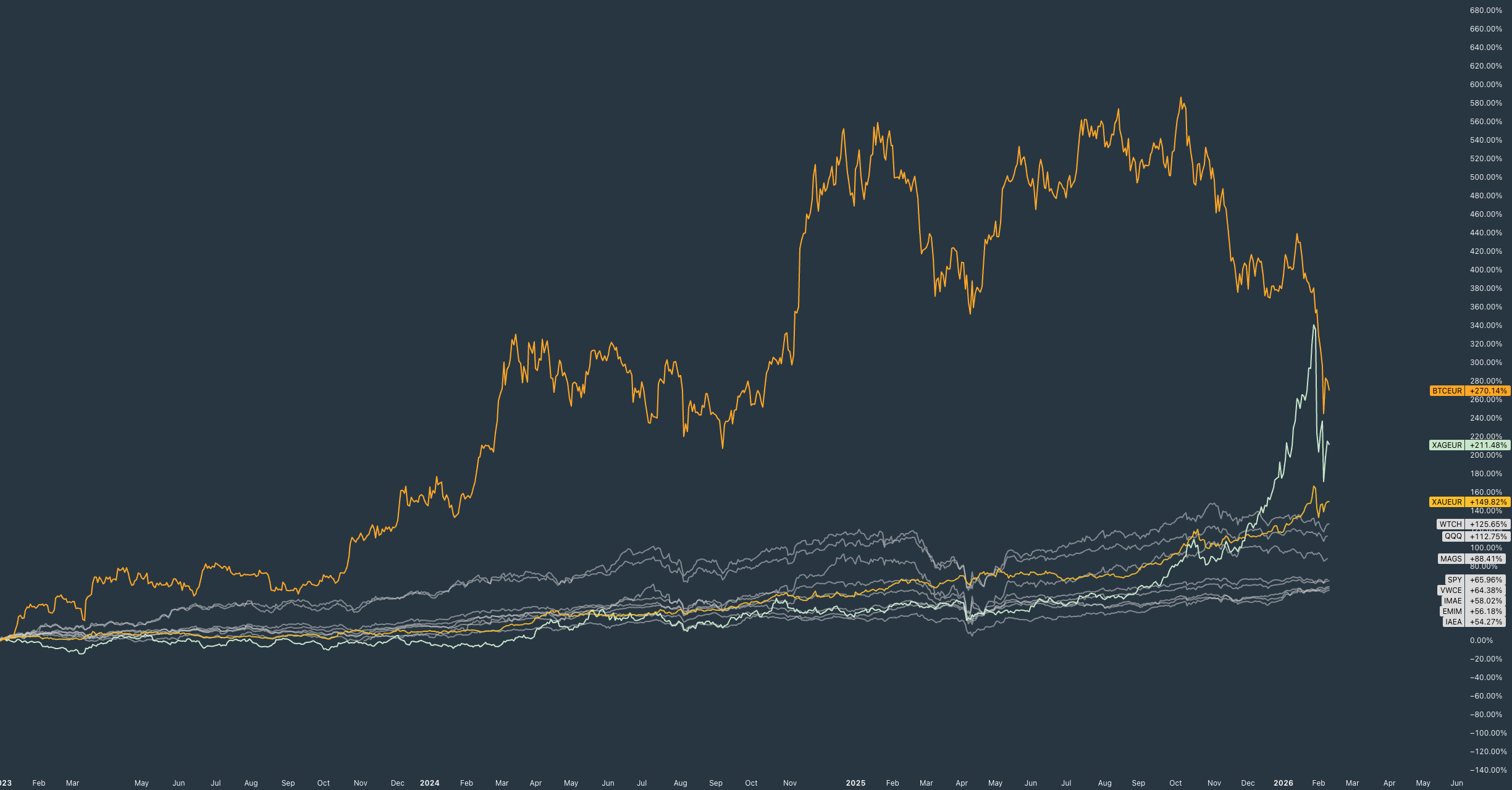 Vanaf de bodem van de bearmarkt in 2022 volgen we consequent dezelfde set indices, aandelen, ETF’s en crypto-assets.
