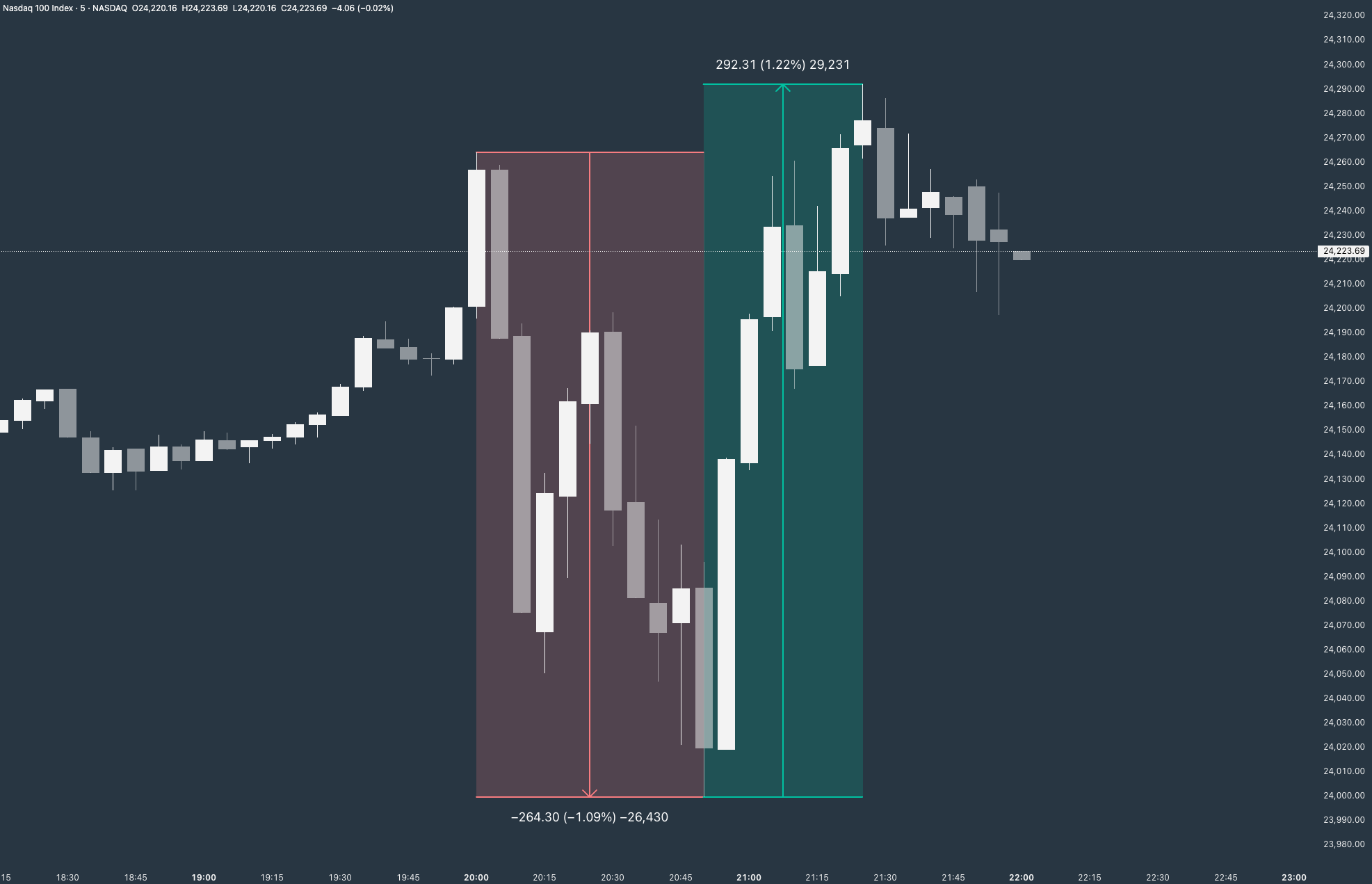 Voorafgaand aan de aankondiging van de FED, stond X weer vol met speculatieve theorieën over de renteverlaging. "Wat als ze 0,5% doen, wat als de markt het niet leuk vindt, wat als wat als...". En toen de verlaging erdoor was, dook de markt naar beneden en zat iedereen aan de grafieken geplakt om kaas te maken van deze beweging.