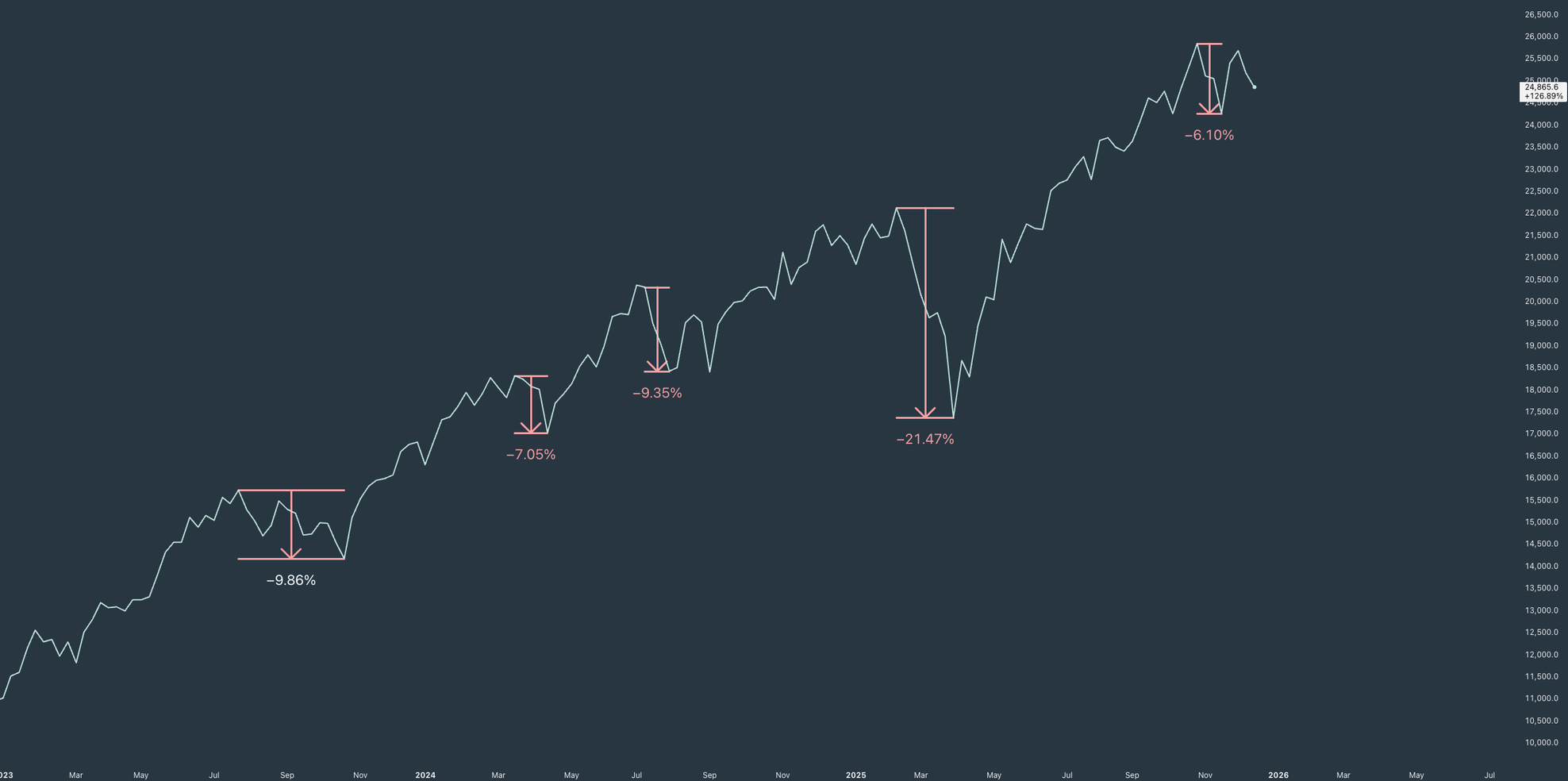 Ook toen was er genoeg reden om negatief te zijn over de toekomst van beleggingen. Net als in 2023, met de bankencrisis. Of in 2024, met de Yen-Carry-Trade. Er waren in de afgelopen drie jaar genoeg momenten om onzeker te zijn en dan maar te verkopen.