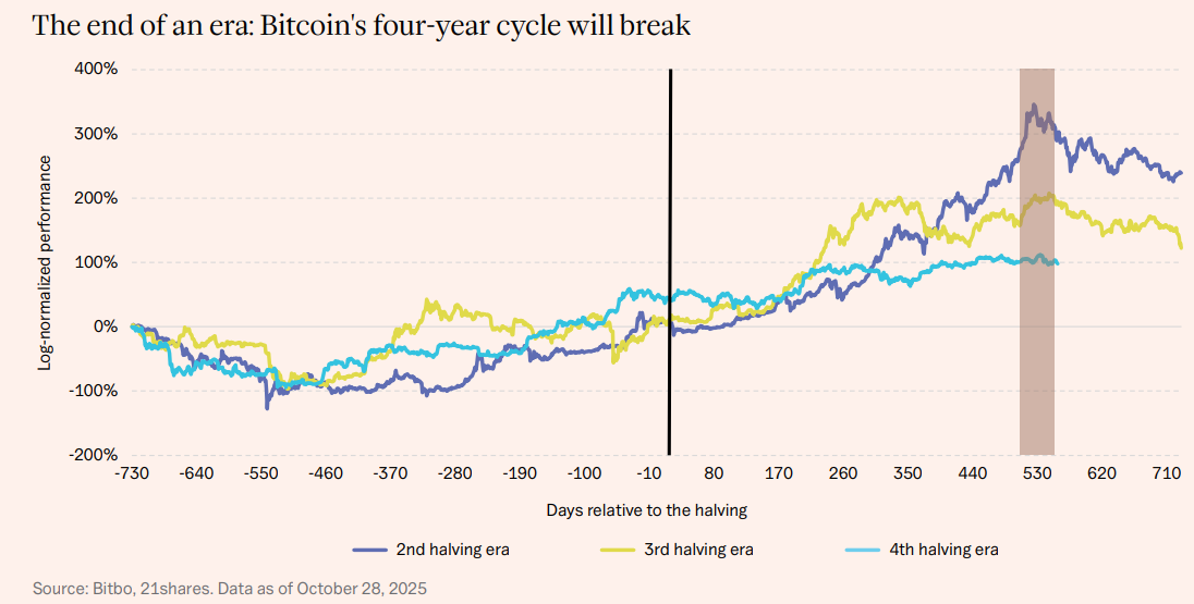 Een van de meest verhitte discussies op X in 2025 ging over de vraag of de vierjarige cyclus in crypto nu definitief voorbij is. Beide kampen hadden solide argumenten, maar in de rapporten kiest men bijna unaniem de kant van degenen die niet langer geloven in het voortbestaan van die klassieke cyclus.