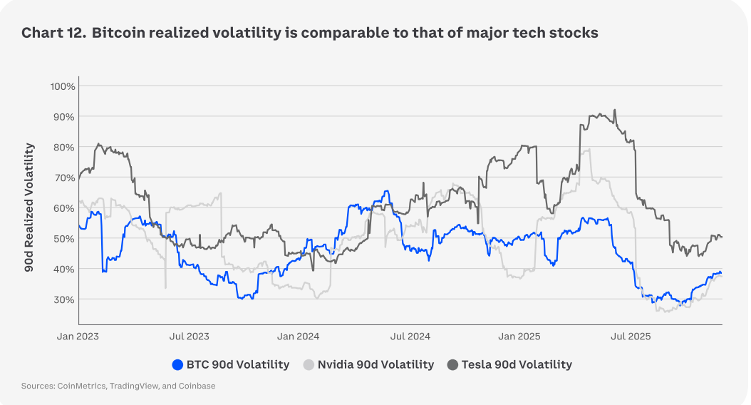 Ook de institutionele adoptie ontbreekt uiteraard niet in de rapporten. De impact van miners die Bitcoin verkochten om hun operationele kosten te dekken, is intussen veel kleiner geworden. Nu grotere spelers met heel andere doelstellingen en tijdshorizonten massaal de markt zijn ingestapt, verwacht men dat dit in de toekomst zal zorgen voor merkbaar minder volatiliteit.