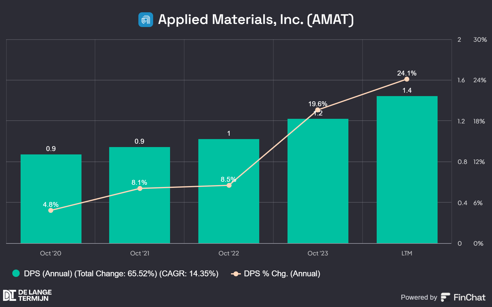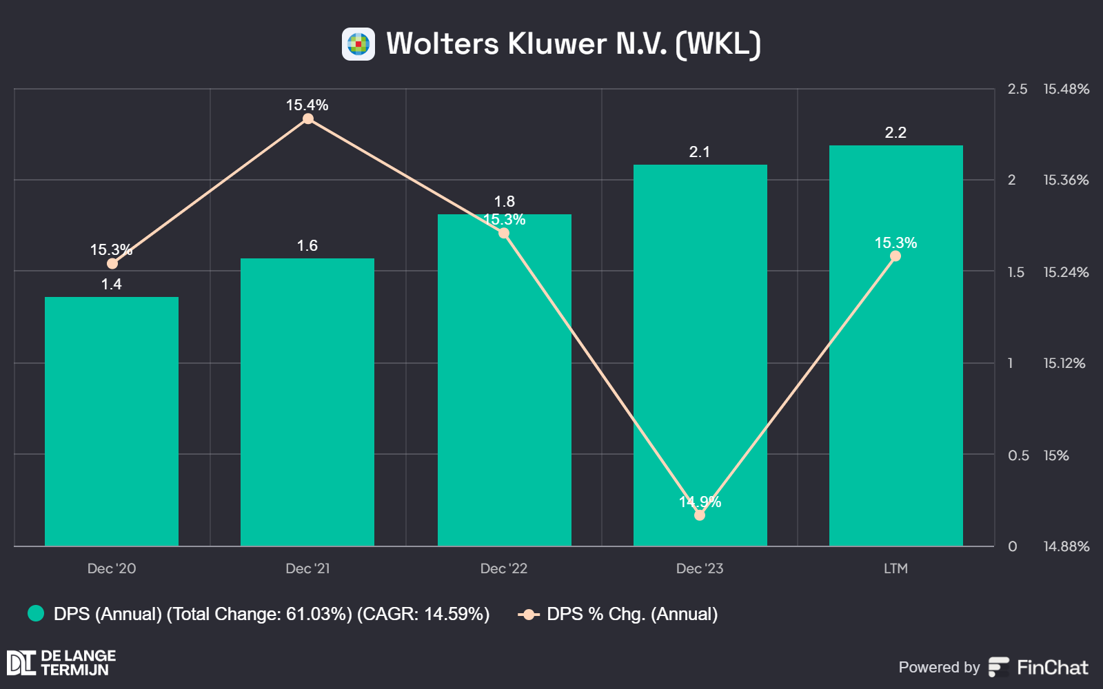 Visa en Applied Materials hebben lage payout ratio's (22% en 16%), wat ruimte biedt voor verdere dividendgroei. NXP en Intuit blijven ook solide, terwijl Wolters Kluwer iets hoger zit op 51%.