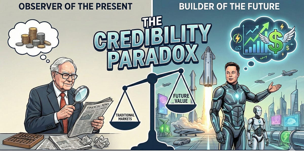 - Dat is een dubbele standaard: we geloven de waarnemers (Buffett, Dimon, Powell) meer dan de bouwers (Musk).