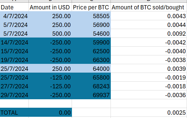 Dit betekent dat ik uiteindelijk meer Bitcoin heb om te verkopen wanneer mijn koersdoelen op de langere termijn bereikt worden. Want nu is 0.0025 BTC maar 150 USD waard, maar bij een nieuwe doorbraak van de ATH kan dit snel oplopen.