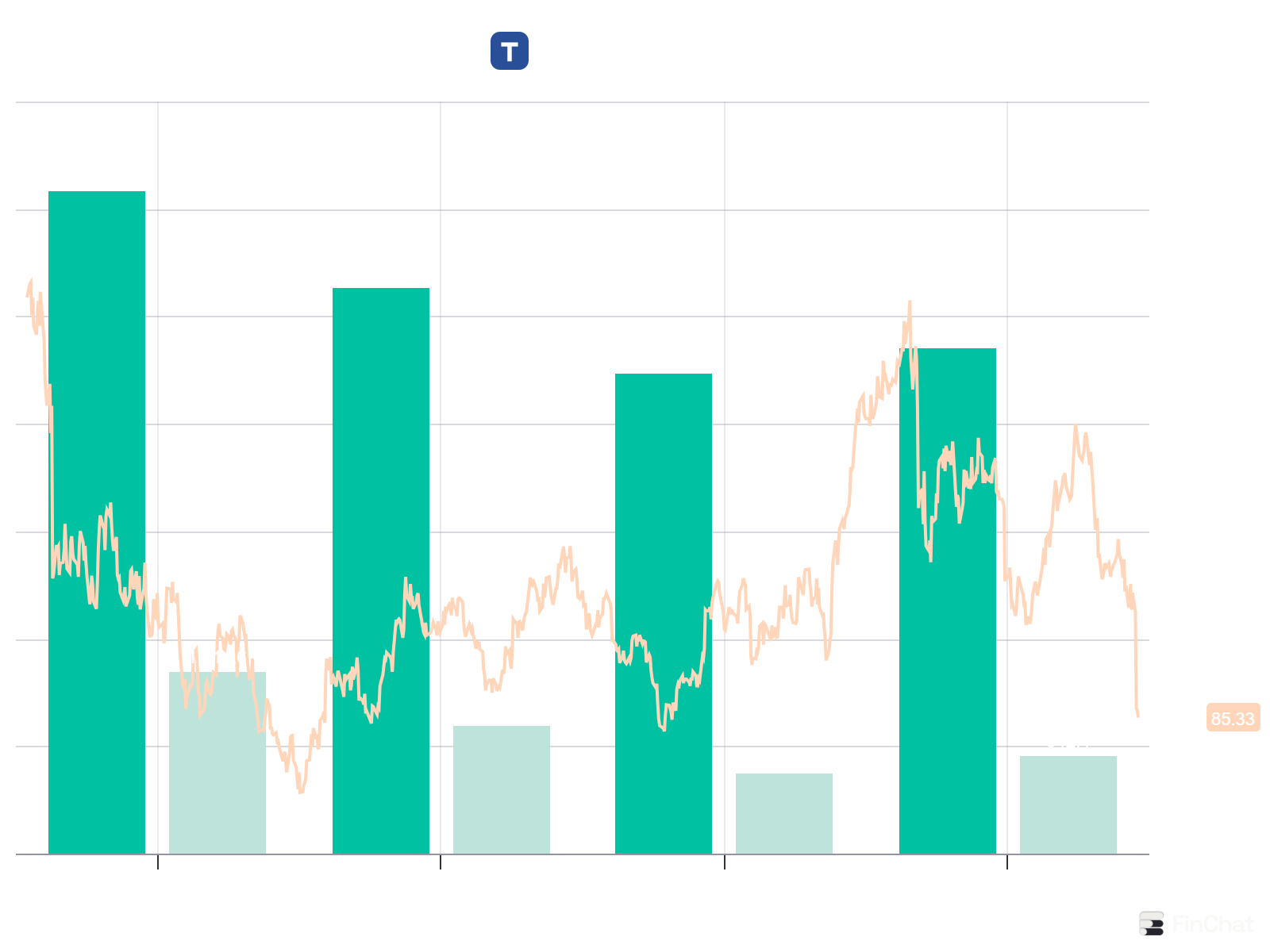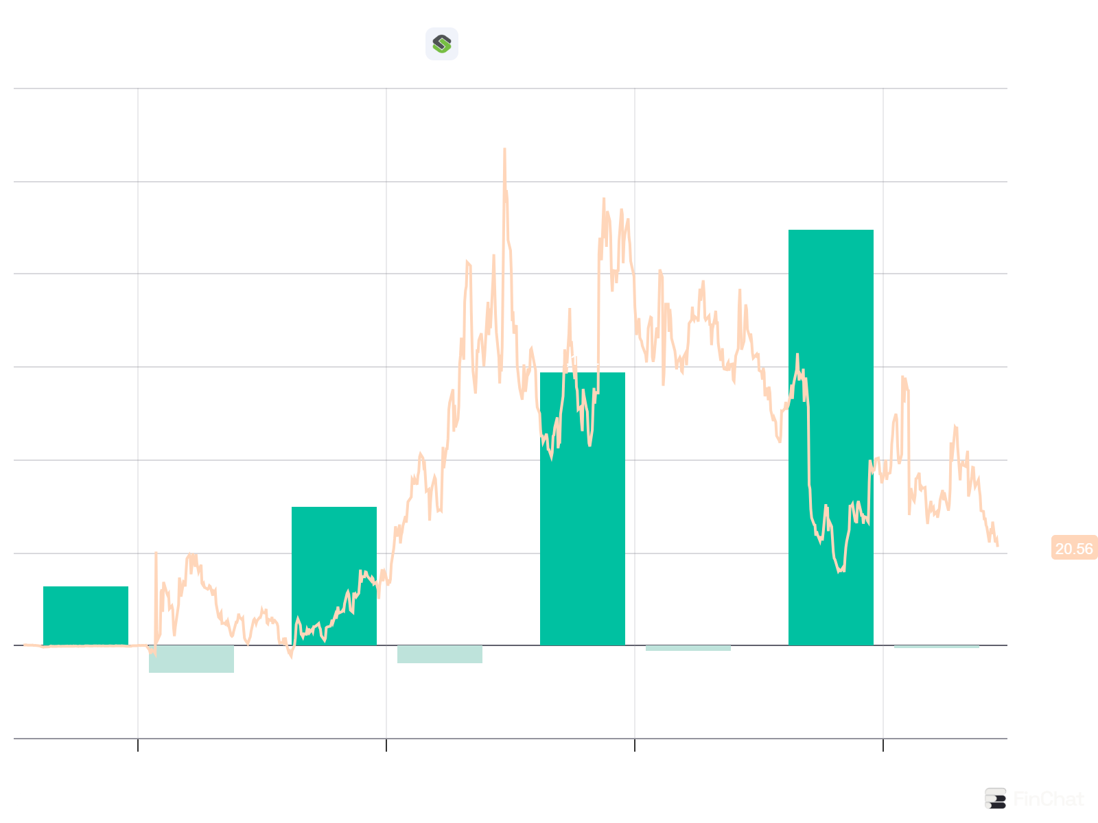 - Toch is de koers sinds de piek eind 2023 met 64% gedaald.