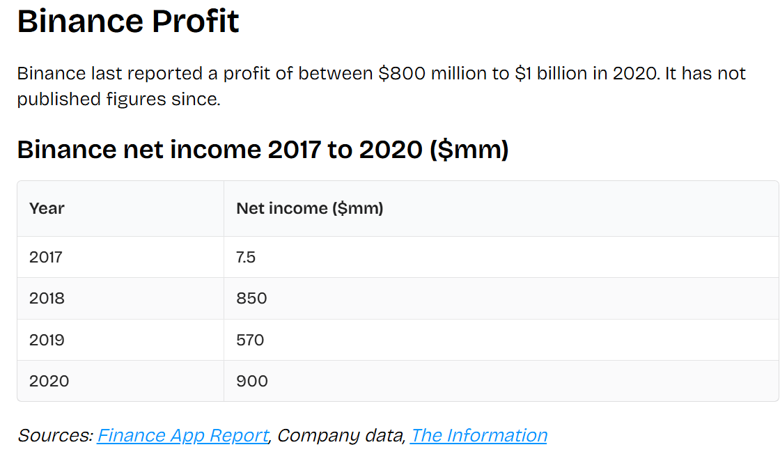 Binance rapporteerde ook cijfers van de winst, maar dit is echter wel tot en met 2020. Aangezien ze niet beursgenoteerd zijn, hebben ze uiteraard niet dezelfde verplichtingen als bedrijven die dat wel zijn.