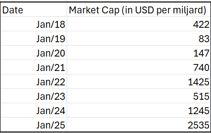 Als de Layer-1's, die 80% van de cryptomarkt vertegenwoordigen, hetzelfde pad zouden volgen, dan zou de marktwaarde van Layer-1 in 2030 net onder de 5 biljoen USD komen te liggen.