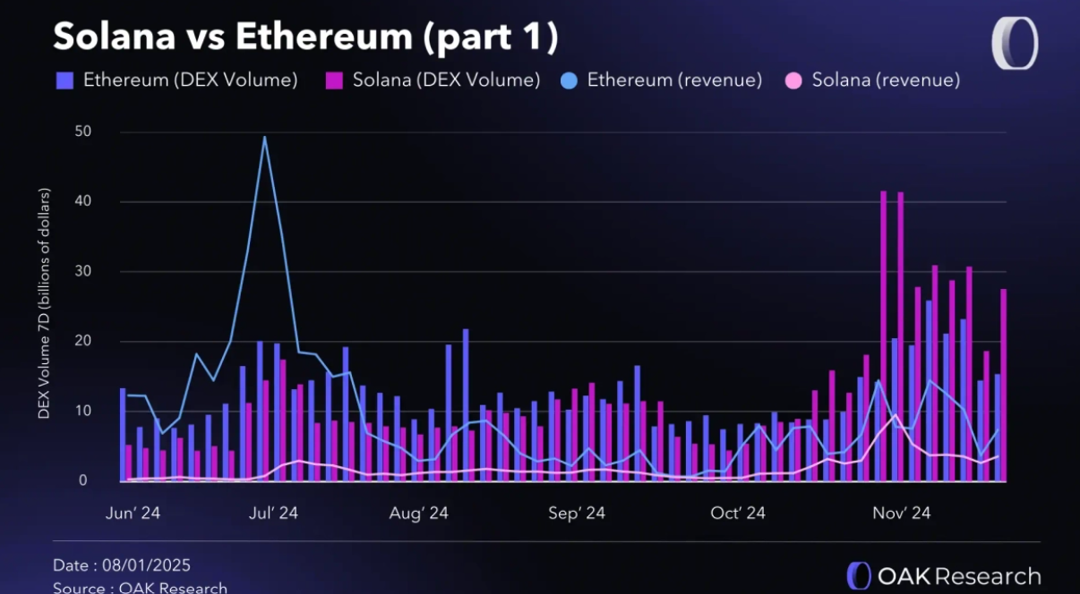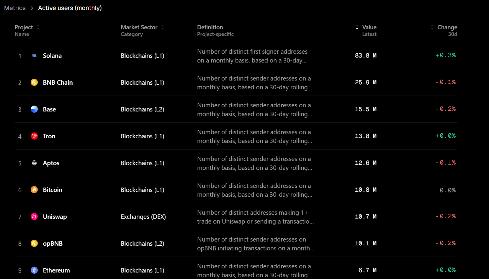 In deze metric komt Ethereum er voor het eerst uit als grote overwinnaar, gevolgd door Solana en Binance chain.