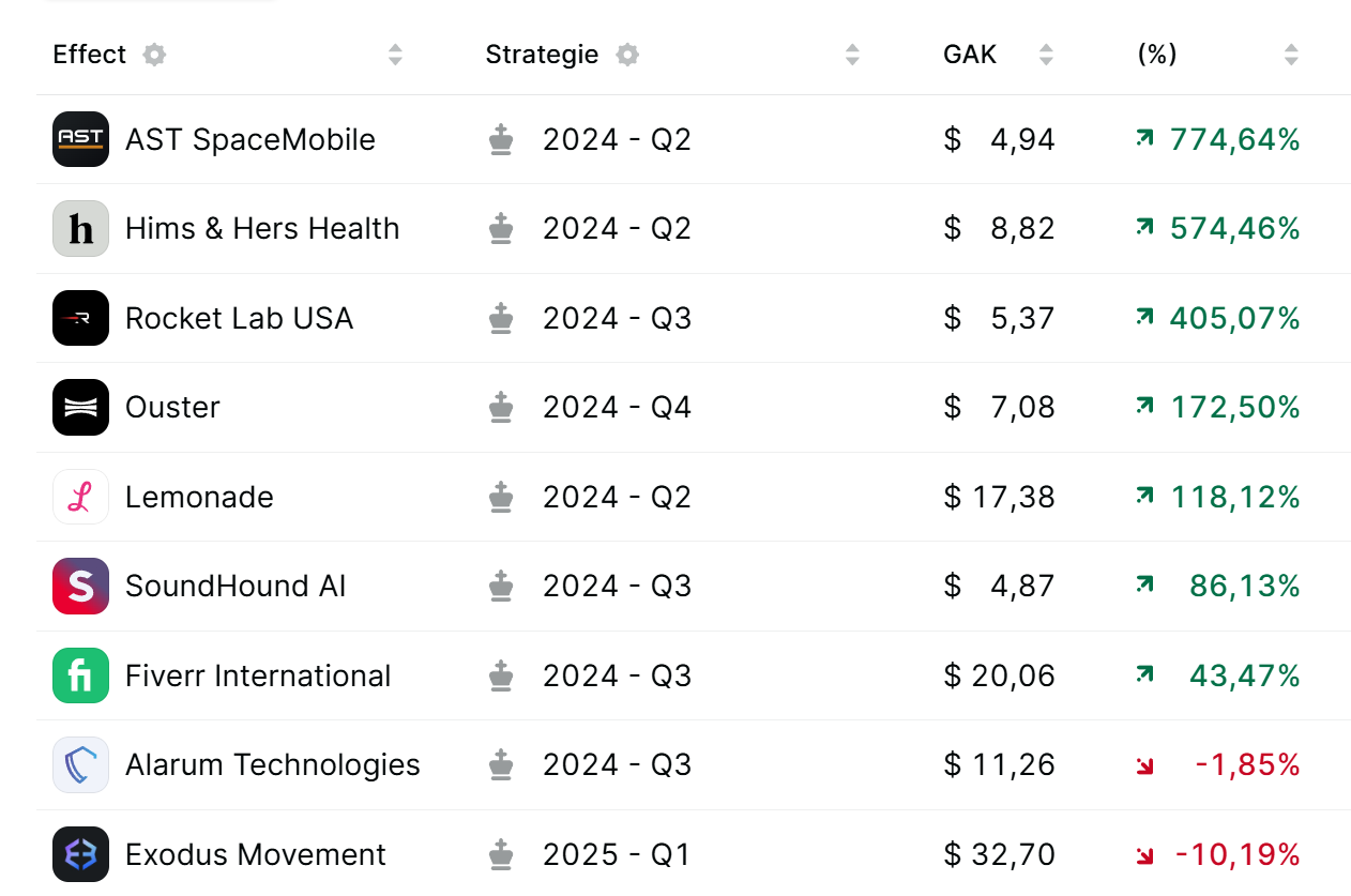 - Zelfs Ouster, pas toegevoegd in Q4 vorig jaar, staat al op +172%