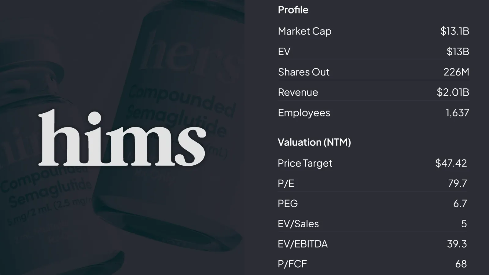 Als ik Hims & Hers met een frisse blik zou beoordelen, dan zou ik concluderen dat het aandeel momenteel iets te hoog gewaardeerd is.