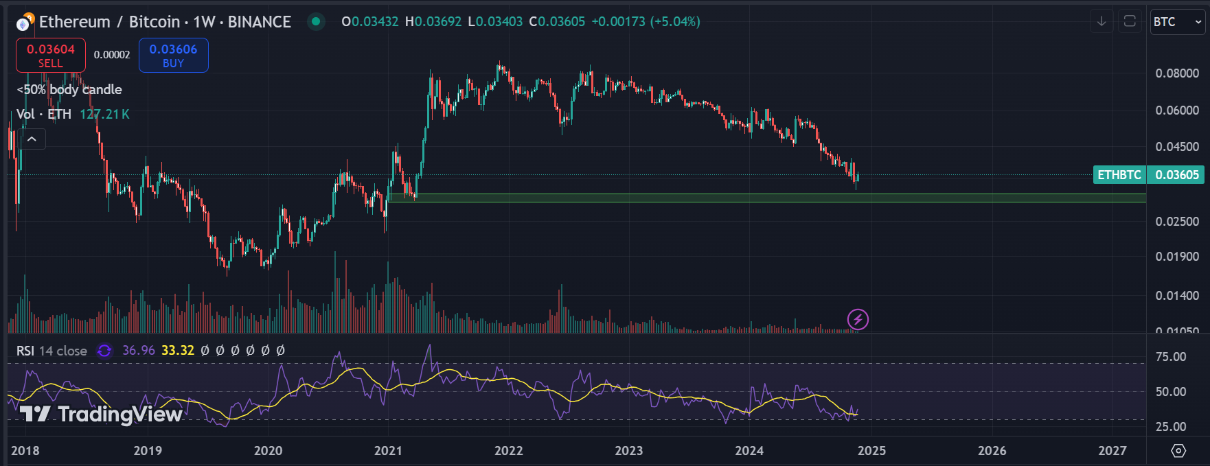 Aangezien ik verwacht dat de Bitcoin-dominantie binnenkort een top zal neerzetten en ik verder blijf DCA-out toepassen voor BTC, verwacht ik dat mijn Ethereum- en Altcoin-allocatie in 2025 mijn Bitcoin-allocatie gaan inhalen. Zodra Ethereum groter is dan Bitcoin, hoop ik deel uit te mogen maken van team #etherbak.