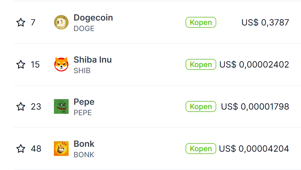 Doge, Pepe, Shiba Inu, Bonk... Ze hebben eigenlijk niet veel uitleg nodig. Deze coins zijn enkel en alleen gecreëerd voor entertainment en zijn volledig afhankelijk van hun community. Wil je echter de grootste achtbaan van cryptoland ervaren, dan kom je waarschijnlijk bij memecoins uit. Volatiliteit is gegarandeerd, en een klein percentage in memecoins kan wat extra beweging in je portfolio brengen.