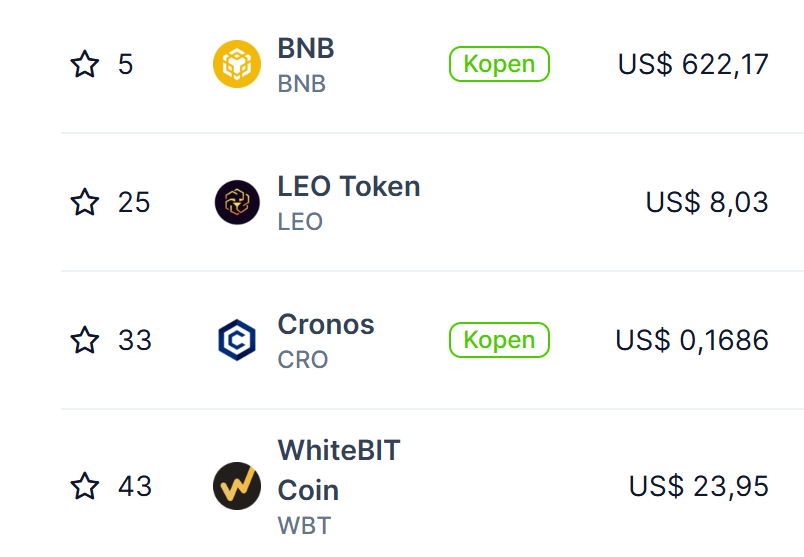 Centrale exchange-tokens zoals BNB, CRO en nog vele anderen kunnen het vaak erg goed doen tijdens een Altcoin-seizoen. Veel retailbeleggers stappen op dat moment de markt in en openen accounts bij de grootste exchanges. Tijdens zo’n Altcoin-seizoen is er bovendien een enorme piek in handelsvolume, waarvan de CEX een mooi graantje meepikt. Als dat nog niet genoeg is, zie je vaak ook dat CEX's hun eigen tokens burnen, wat de waarde verder kan verhogen.