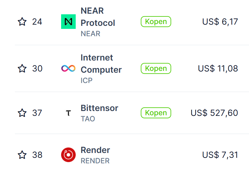 Het zal je niet verbazen dat deze sector deel uitmaakt van deze lijst. Sinds ChatGPT het licht zag en Nvidia een van de grootste beursgenoteerde bedrijven werd, is AI alomtegenwoordig. Ook in crypto zagen we enkele AI-coins enorme koerswinsten genereren. Deze sector zal volgens mij zeker een graantje meepikken bij een sterke Altcoin-stijging.