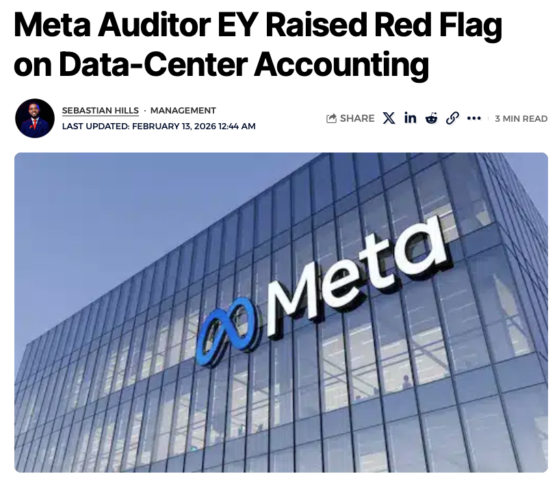 Meta kwam ook onder vuur te liggen nadat accountant Ernst & Young een "critical audit matter" uitbracht over de manier waarop het bedrijf een datacenterproject van $27 miljard buiten de balans houdt via een joint venture met Blue Owl Capital (die naam heb je vast voorbij zien komen in de laatste weken).