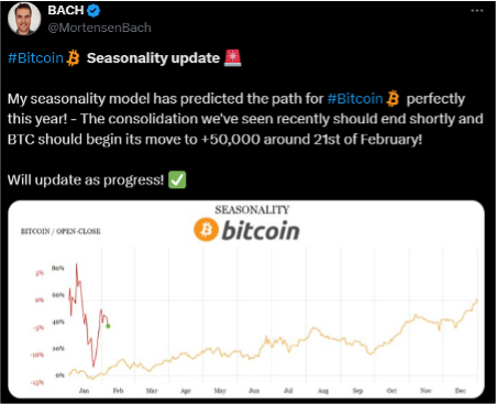 Deze mogelijke daling en bodem zijn voorspellingen van Mortensen Bach, die in zijn 'seasonality model' een daling verwacht van eind februari tot begin maart, waarna de echte opmars plaatsvindt.