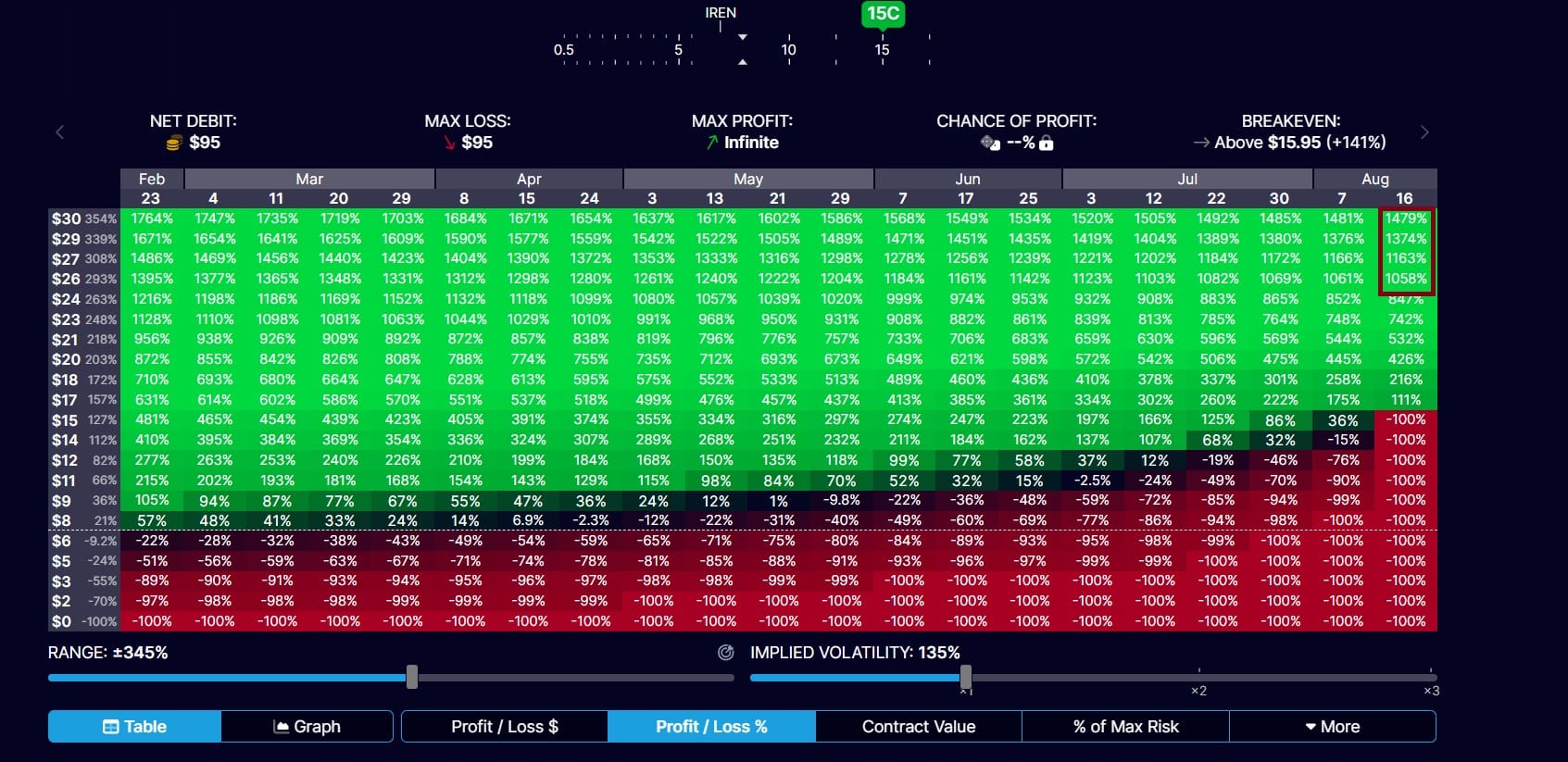 Iris Energy | $15 call (16 augustus) | Aandeel |