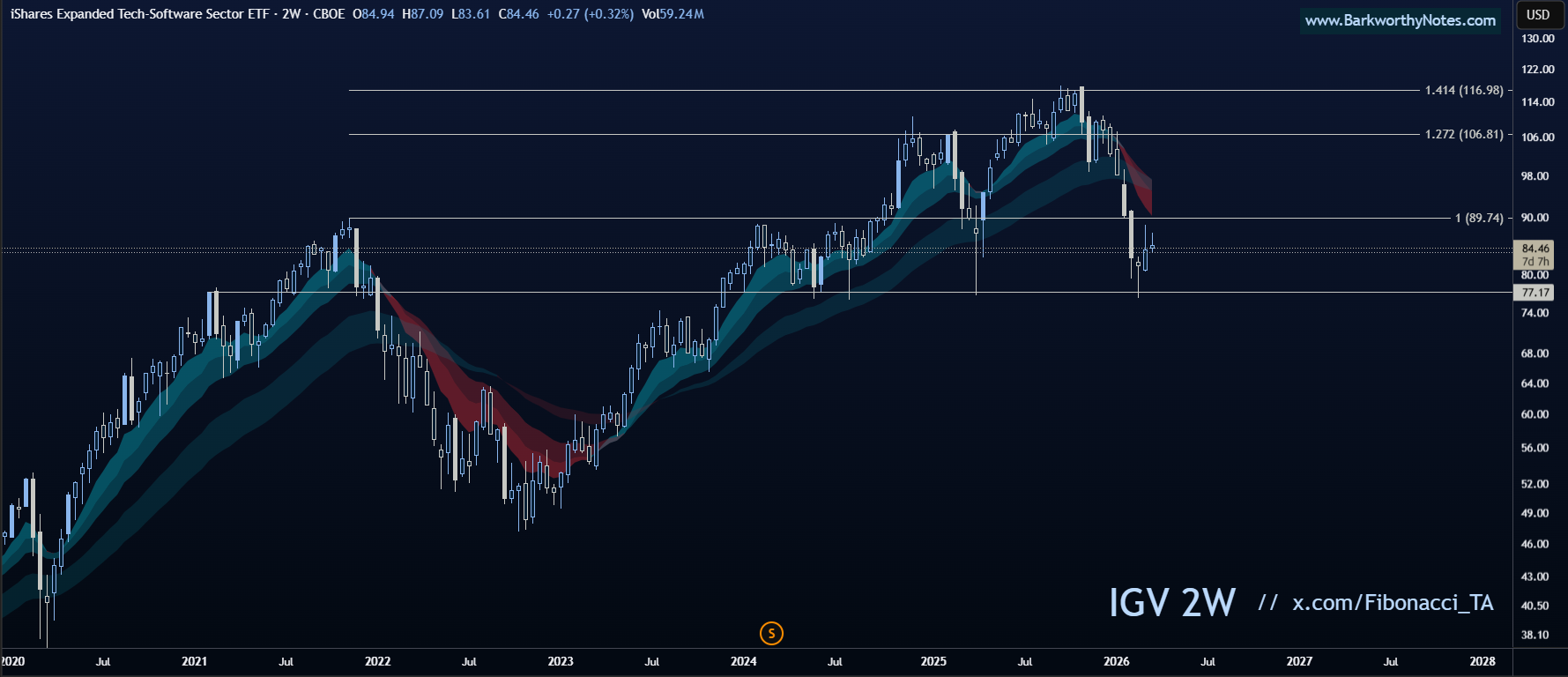 - Hebben we de bodem al gezien van de softwaresector? Waarbij we de iShares Expanded Tech-Software Sector gebruiken als proxy.