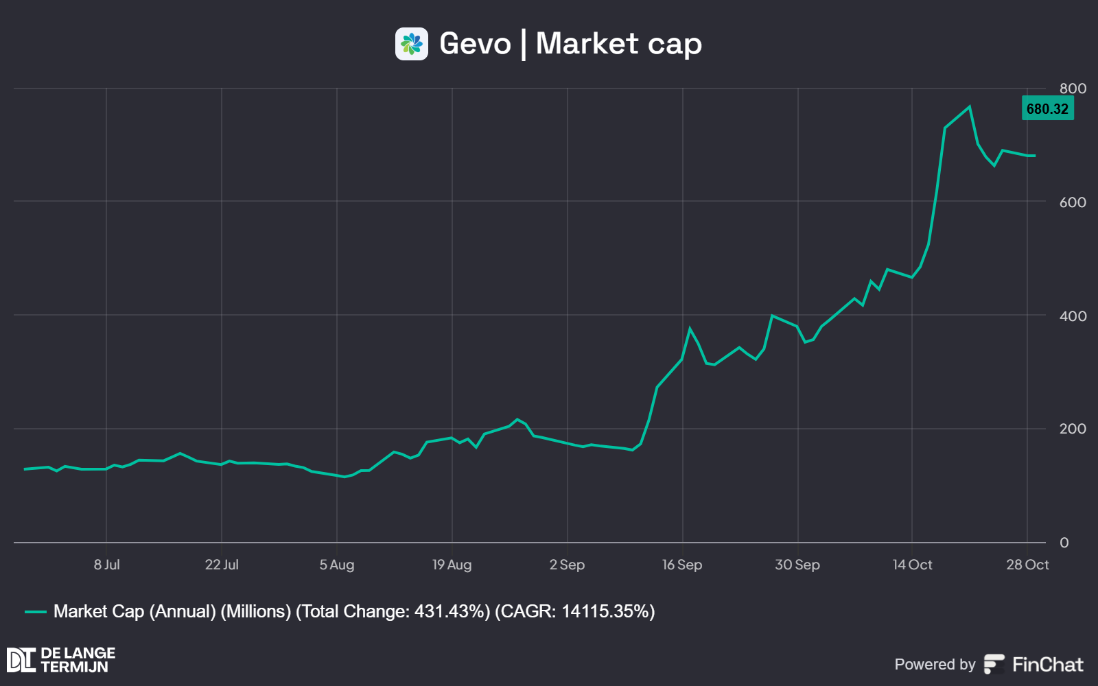 Een ander populair aandeel binnen onze community: Gevo. Ook dit aandeel was met $128 miljoen een microcap voordat de koers fors omhoog schoot.