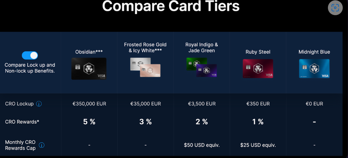 Crypto.com heeft veel klanten naar hun platform gelokt met een aantrekkelijke cashback debitkaart. Als je hun native token CRO kocht en deze in staking zette, kon je een debitkaart aanvragen. Hoe meer je in staking had, hoe hoger de tier van je kaart en hoe hoger je cashback rewards.