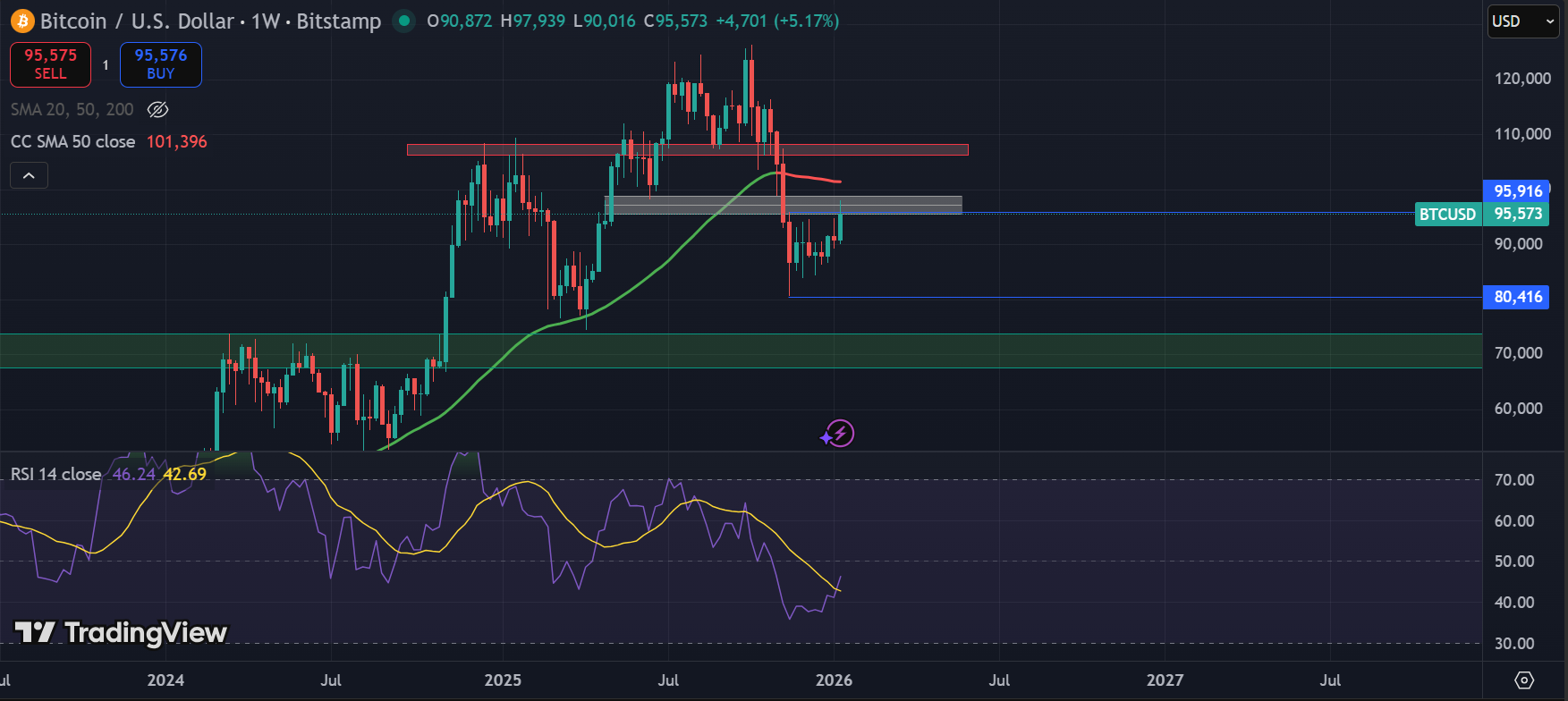 Sinds het moment dat Bitcoin dwars door de 100K zakte, is het momentum in de cryptomarkt weggevallen. Altcoins deden het eigenlijk al langer niet goed, en de 100K-zone fungeerde zo’n beetje als de laatste strohalm om de uptrend voort te zetten.