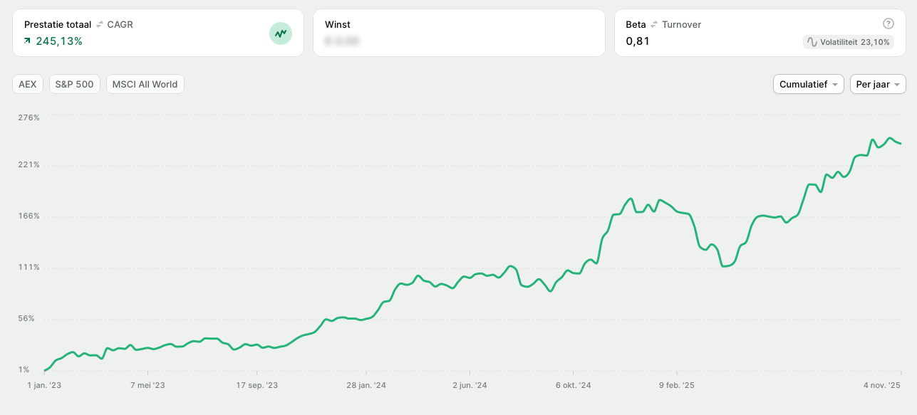 Ik beleg al jaren in onder andere ETF's, groeiaandelen, goud, crypto en startups. Sinds ik ben begonnen met beleggen in 2006, heb ik een gemiddeld jaarlijks rendement (CAGR) van 19,90% weten te behalen.