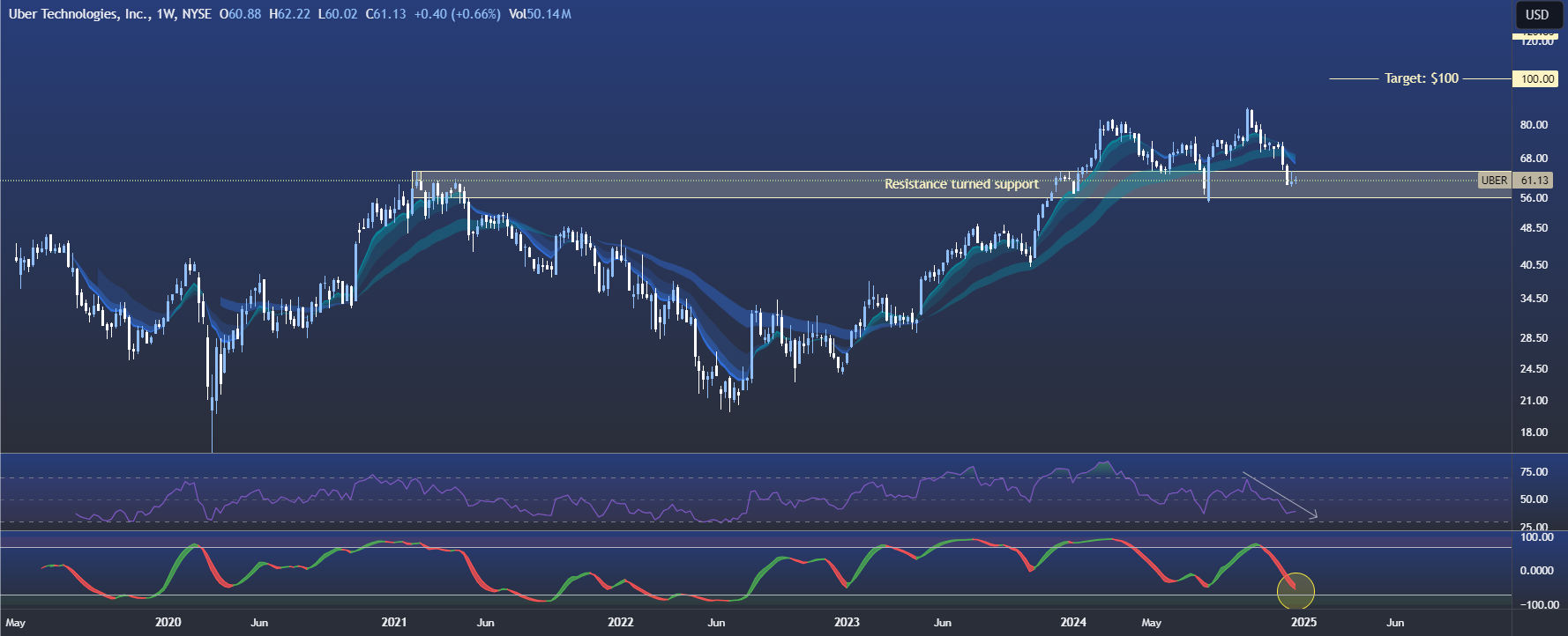 Maar precies dit inzicht bevestigt voor mij: het is een prima moment om Uber opnieuw toe te voegen aan mijn portfolio. Al wil ik deze keer TA onderdeel laten zijn van mijn koopmoment. Dus Yuri, kom er maar in..!