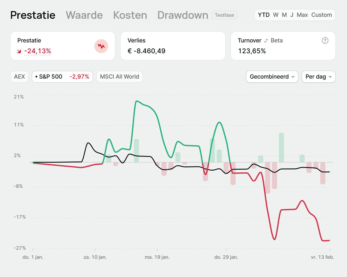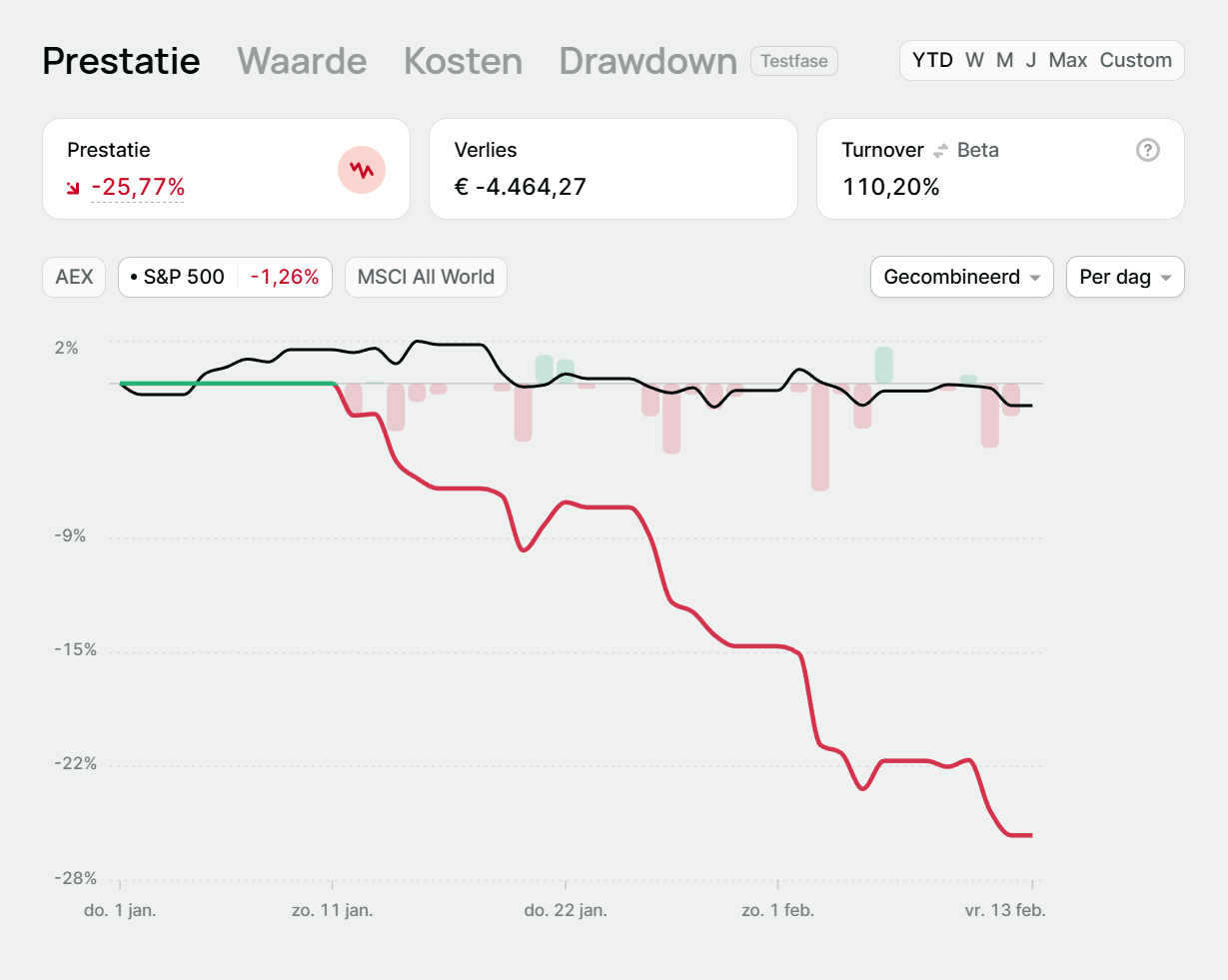 Na een prima start van 2026 is de klad er stevig ingekomen. Frappant genoeg is dit enigszins vergelijkbaar met de start van 2025, toen we vliegend van start gingen, totdat in februari de algehele markt fors daalde.