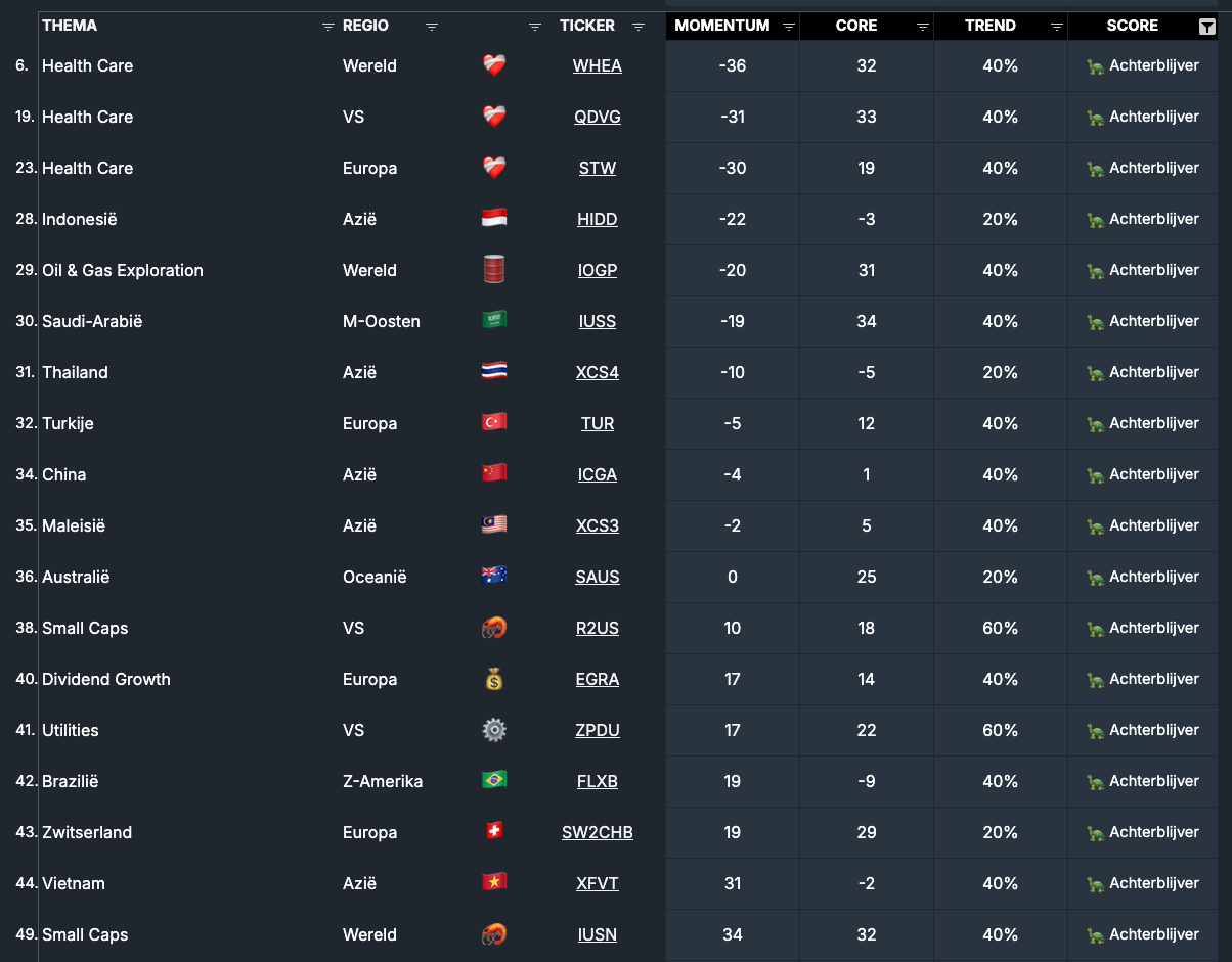- 🐴 Kanspaarden: ETF's met solide prestaties, maar huidig even het positieve momentum kwijt